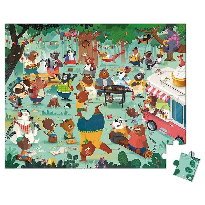 Le Puzzle Cousinade des Ours Janod de 54 pièces offre une scène attendrissante mettant en valeur une grande réunion familiale d’ours au cœur de la forêt. Illustré avec soin et rempli de détails, ce puzzle est idéal pour développer observation, mémoire et dextérité tout en partageant un moment de jeu apaisant.