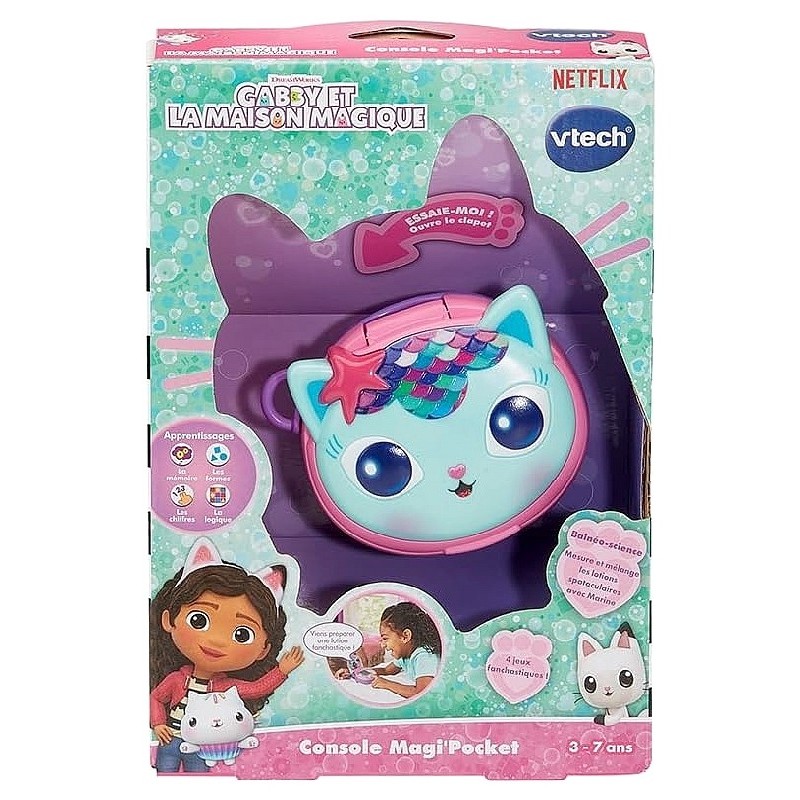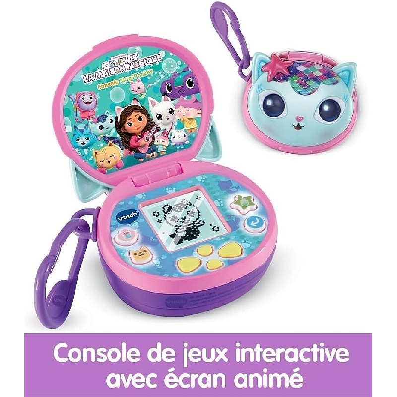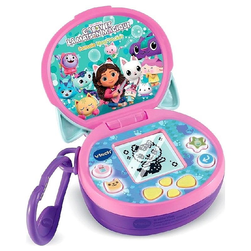 La console Magi'Pocket de VTech, inspirée de la série animée Dreamworks Gabby et la maison magique, est une mini console interactive qui combine apprentissage, imagination et divertissement dans un format portable.